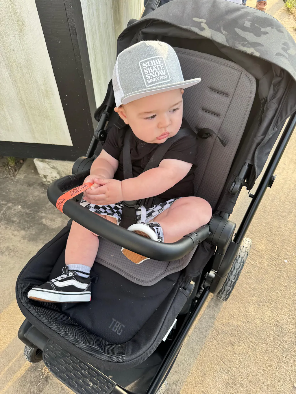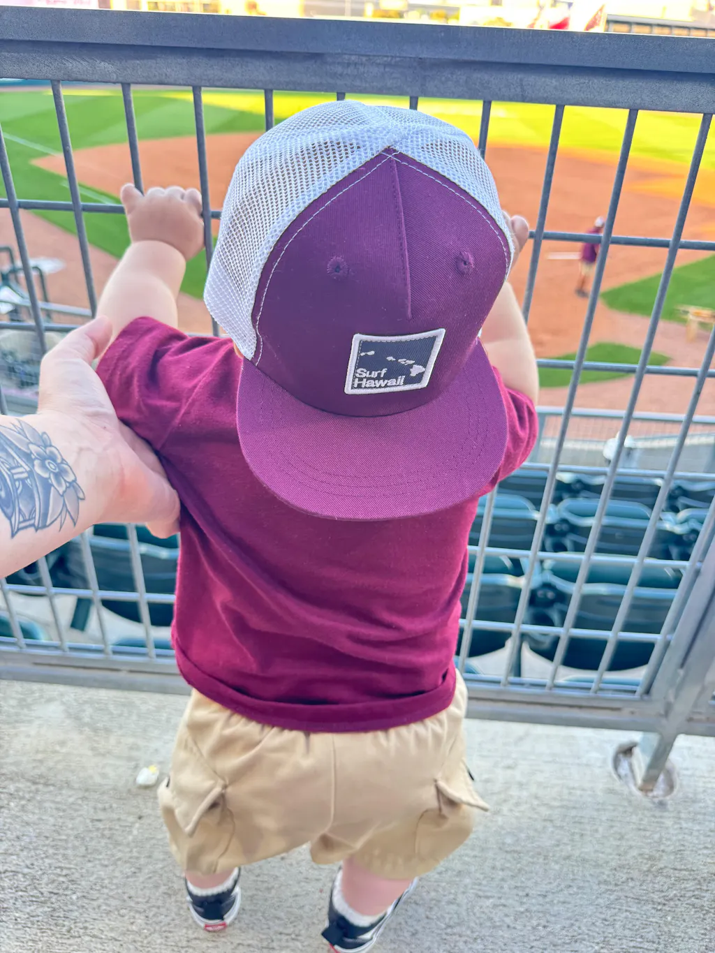 Our Snapback hats are true-to-size based on the child's age. What this means is the average sized kid--about 50% on the growth charts--is used as the barometer for head circumference. If you have a child whose age fits evenly between the ranges (4months-12months, 12months-3 years, 3years-6years) or you know is larger than average, it might be best to size up rather than to size down.