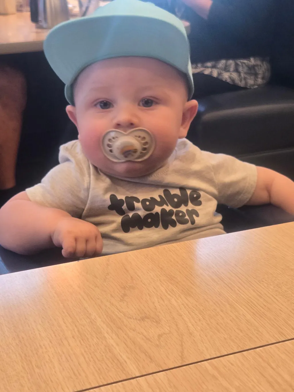 Our Snapback hats are true-to-size based on the child's age. What this means is the average sized kid--about 50% on the growth charts--is used as the barometer for head circumference. If you have a child whose age fits evenly between the ranges (4months-12months, 12months-3 years, 3years-6years) or you know is larger than average, it might be best to size up rather than to size down.