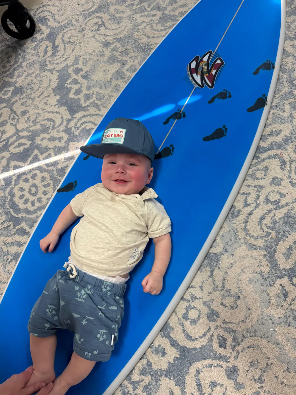 The Hapitii infant/baby, toddler, youth snapback hat is 100% polyester. It is very light-weight and water resistant.