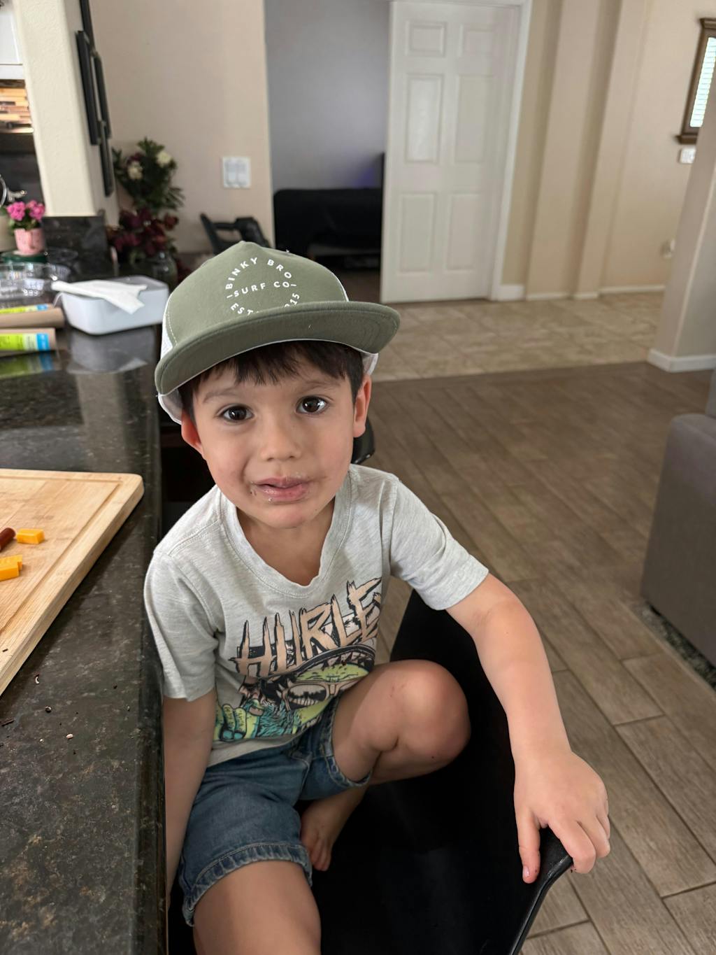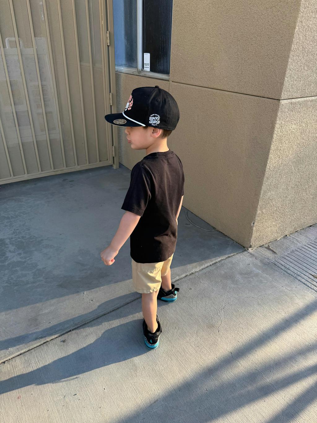 Our Snapback hats are true-to-size based on the child's age. What this means is the average sized kid--about 50% on the growth charts--is used as the barometer for head circumference. If you have a child whose age fits evenly between the ranges (4months-12months, 12months-3 years, 3years-6years) or you know is larger than average, it might be best to size up rather than to size down.